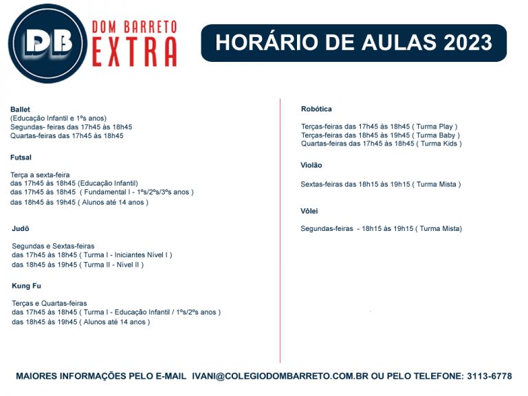 INFORMATIVO – DOM BARRETO EXTRA MATRÍCULA 2023 Vagas Limitadas! Garanta a sua!