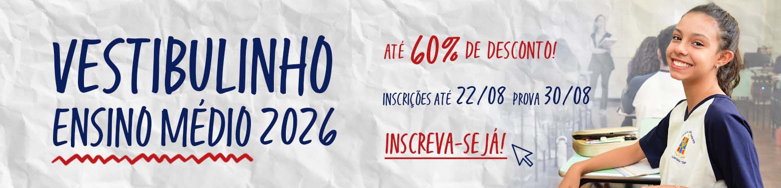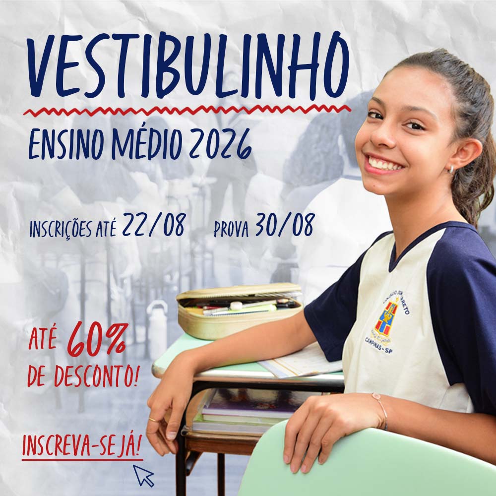 Esta é a oportunidade para alunos do 9° ano concorrerem a descontos para estudar no Colégio Dom Barreto. Faça sua inscrição para a prova e comece a construir um futuro brilhante com o ensino forte que aprova direto do terceirão para o vestibular!